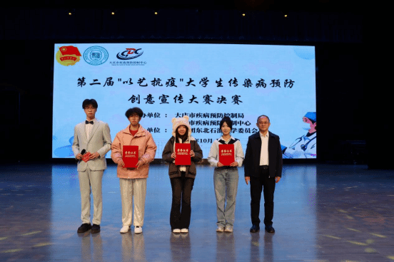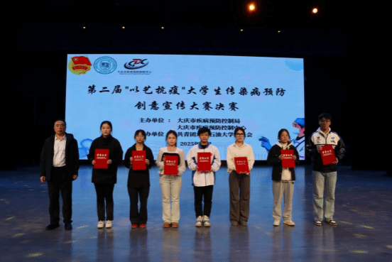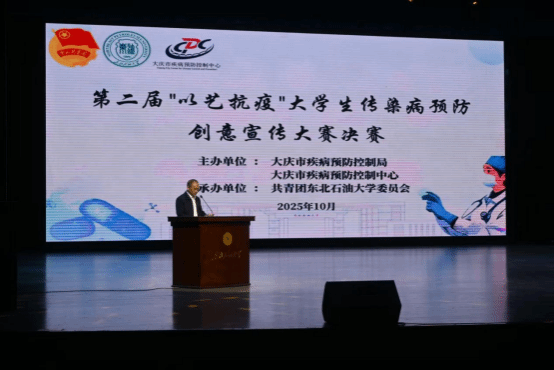 为提升大学生对传染病预防知识的理解与传播能力,筑牢校园公共健康防护网,10月22日,由大庆市卫生健康委员会、大庆市疾控局、大庆市疾病预防控制中心联合主办,共青团东北石油大学委员会承办的第二届“以艺抗疫”大学生传染病预防创意宣传大赛决赛,在东北石油大学音乐厅隆重举行。