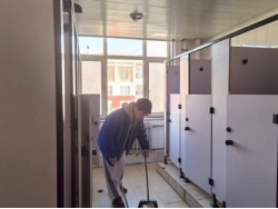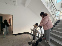 第一食堂后厨内,食堂主任韩文栋为学员们系统讲解了食品安全规范与操作流程。随后,学员们换上工作服,亲身体验了餐具从清洗、冲刷到放入消毒柜高温消毒的全过程,学习到了餐饮保障中严谨规范的重要性。第二食堂热炒区里,食堂主任姜振锋现场展示了标准的切菜手法与烹饪技巧,学员们跃跃欲试,在指导下尝试操作炒锅,感受火候与调味之间的配合,体味一餐一饭背后的用心。在博闻宿舍区,学员们则化身“环境卫士”,手持清洁工具,对走廊地面、楼梯扶手等公共区域进行无死角清理,尤其注重瓷砖缝隙等卫生死角的污垢清除,以实际行动美化居住环境。